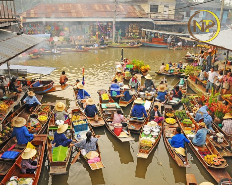 - Chợ nổi 4 miền - với hàng trăm món ăn mang đậm nét đặc trưng ẩm thực Thái Lan